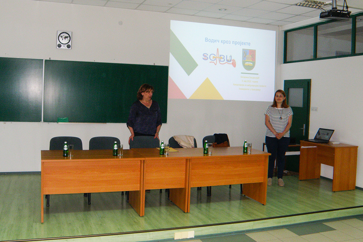 On Monday, May 9, 2022, the Office for International Projects of the University of Kragujevac held a workshop entitled "Guide through projects" at the Faculty of Mechanical Engineering and Civil Engineering in Kraljevo.