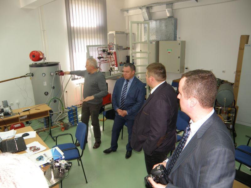 Декан факултета, професор др Миле Савковић је укратко упознао госте са историјатом Факултета и његовим прерастањем од одељења Машинског факултета из Београда до самосталне научно наставне институције у склопу Универзитета у Крагујевцу. Чланови делегације су упознати са тренутним активностима запослених на Факултету као и плановима даљег развоја.