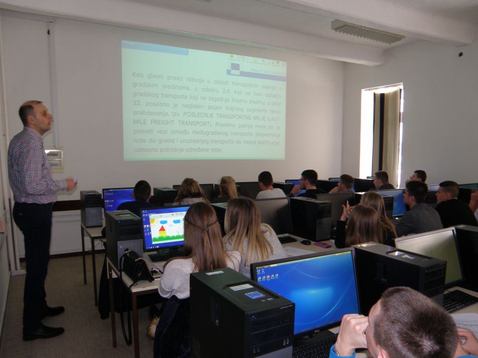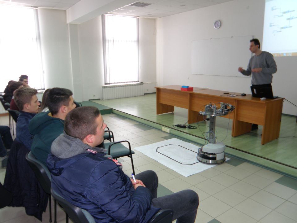 Група ученика образовног профила - техничар мехатронике, присуствовала је радионицама за програмирање ПЛЦ контролера, програмирање микроконтролера „Ардуино" и мобилног робота "Роботино" које су одржали проф. др Драган Пршић, доц. др Владимир Стојановић и Владимир Ђорђевић. Друга група ученика – техничари друмског саобраћаја, присуствовала је радионици која се бавила стратегијом логистике града коју је одржао доц. др Горан Мaрковић.