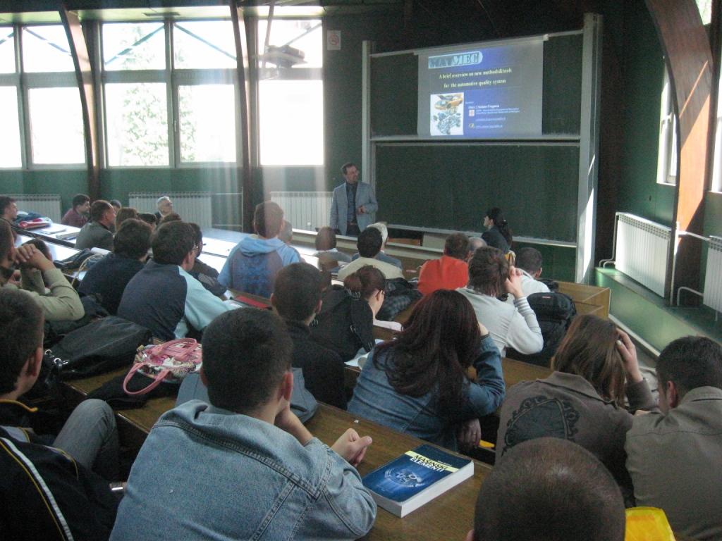 Дана 15.4.2009. на Машинском факултету је одржано предавање СИСТЕМИ КВАЛИТЕТА У ВЕЛИКИМ КОМПАНИЈАМА. Предавање је одржао др Cristiano Fragassa, који је предавач на Dipartimento di Ingegneria delle Costruzioni Meccaniche Nucleari Aerronautiche e di Metallurgia на Универзитет у Болоњи.i.