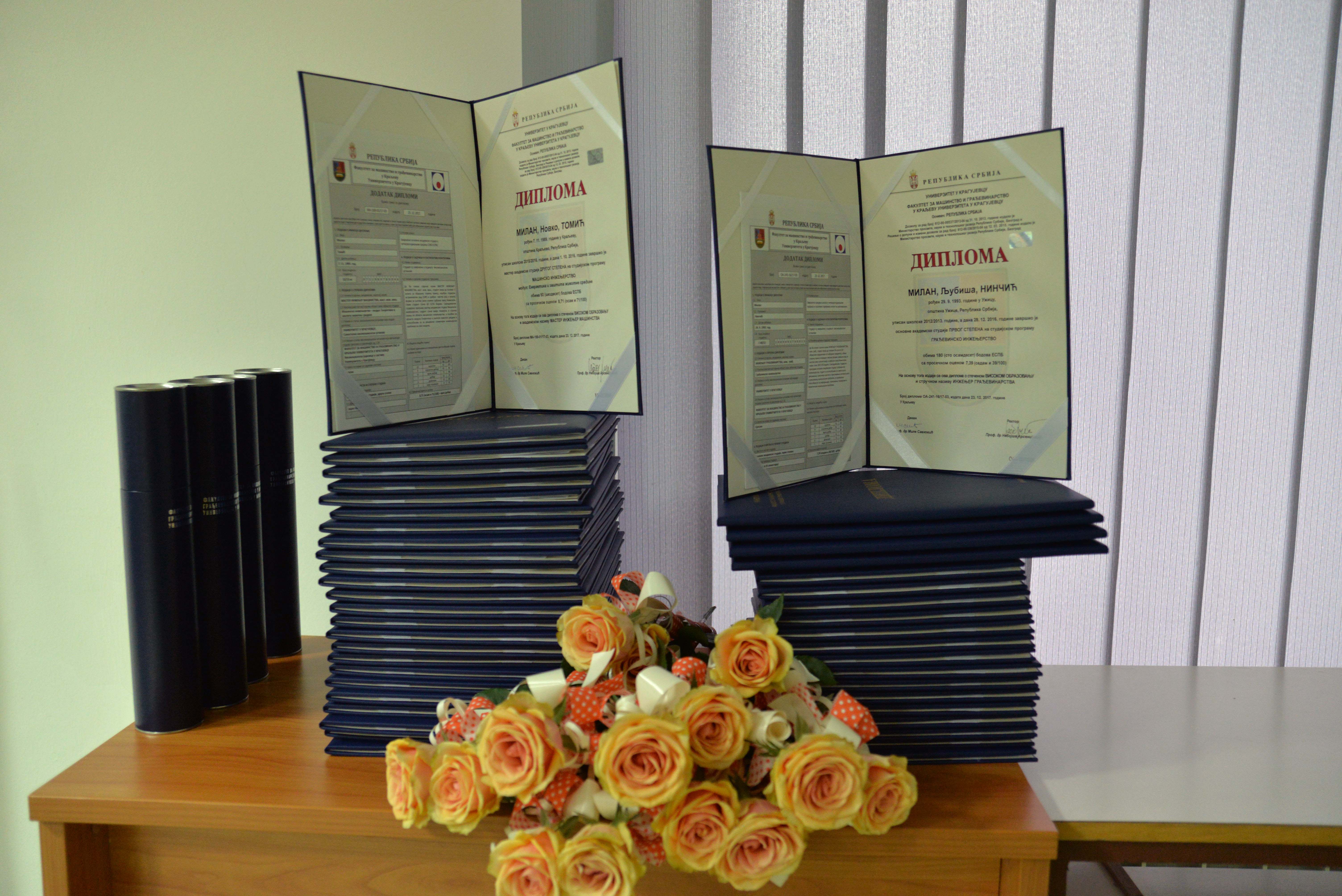Крајем децембра прошле године, на Факултету за машинство и грађевинарство свечано су додељене дипломе студентима основних и мастер студија који су дипломирали у току 2016/2017. године.