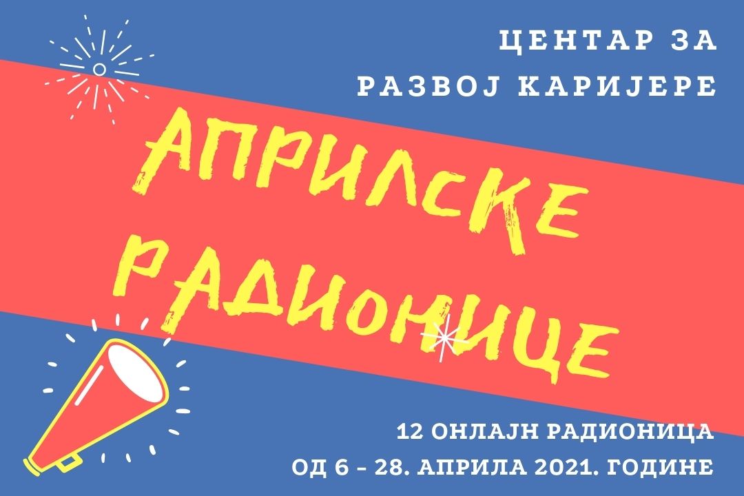 Центар за развој каријере и саветовање студената Универзитета у Крагујевцу и ове године организује традиционалне Априлске радионице за студенте и дипломце Универзитета у Крагујевцу. Програм ће и ове године бити одржан онлајн.